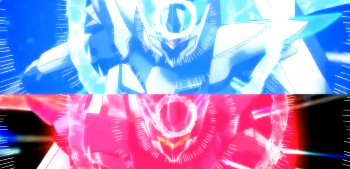When Aoba accepted Hina and Dio's proposals, the three valiancer were surrounded by a blue, pinkish red and bright red orb respectively, with them expending, eventually merging and engulfing the Marcus too, apparently causing the four pilots to have flashes of the others' memories.
